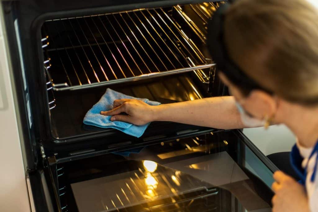 Nachdem Sie die Mischung entfernt haben, beenden Sie die Reinigung mit einem Schwamm und Spülmittel, da so alle Schmutzspuren entfernt werden und Ihr Backofen wie neu aussieht.