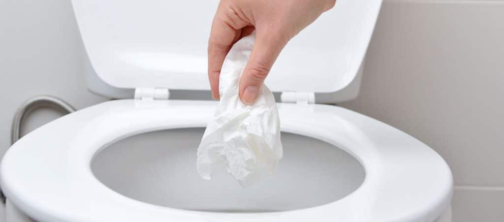 Toilettenpapier ist so konzipiert, dass es sich in Wasser auflöst. Aber selbst das verschwindet nicht in Sekundenschnelle. Wenn Sie eine große Menge auf einmal herunter spülen, kann das Papier zu einem Klumpen verkleben, der an einer Stelle hängen bleibt, an der sich bereits ein kleiner Belag gebildet hat. Und es gibt noch eine schlimmere Kategorie: Papier, das kein Toilettenpapier ist. Küchentücher, Taschentücher oder Papiertücher sind speziell strapazierfähiger hergestellt und behalten ihre Form im Wasser viel länger. In den Rohren bilden sie eine feste Masse, die sich wie ein Pfropfen verhält.